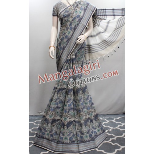 Mangalagiri Powerloom Khadi Cotton Digital Printed Saree with Cotton Thread Border. Saree comes with Unstitched Blouse Piece.