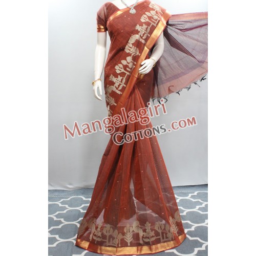 Mangalagiri Powerloom Cotton Nizam Border Saree with Gold Zari Border. Saree comes with Unstitched Blouse Piece.
