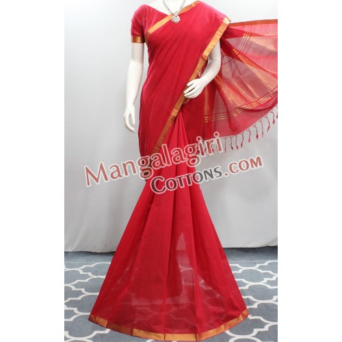 Mangalagiri Handloom Pure Cotton Saree with Gold Zari Border. Saree comes with Unstitched Blouse Piece.