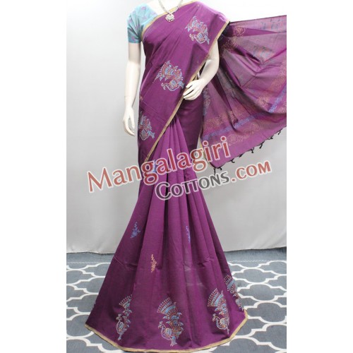 Mangalagiri Powerloom Cotton Printed Saree with Plain Border. Saree comes with Unstitched Blouse Piece.