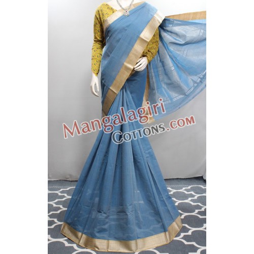 Mangalagiri Handloom Pure Cotton Saree Silver Zari Border. Saree comes with Running Blouse and Extra 1meter Ajrakh Cotton Blouse Blouse.