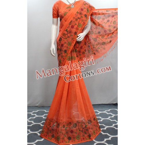 Mangalagiri Handloom Cotton Screen Printed Saree with Plain Border. Saree comes with Unstitched Blouse Piece.