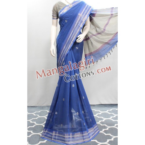 Mangalagiri Powerloom Cotton Kollam Butta Saree with Gold Zari Border. Saree comes with Unstitched Blouse Piece.