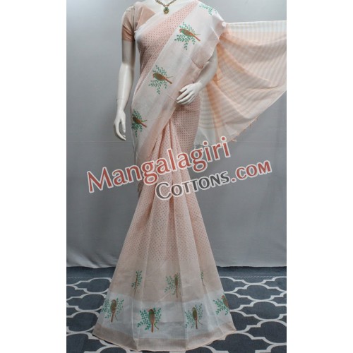 Mangalagiri Powerloom Cotton Screen Printed Saree with Plain Border. Saree comes with Unstitched Blouse Piece.