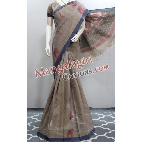 Mangalagiri Powerloom Cotton Butta Saree with Palin Border. Saree comes with Unstitched Blouse Piece.
