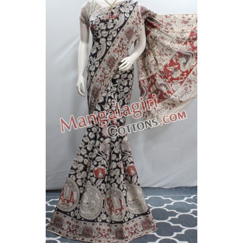 Kalamkari Hand Printed Cotton Saree. Saree comes with Unstitched Blouse Piece.