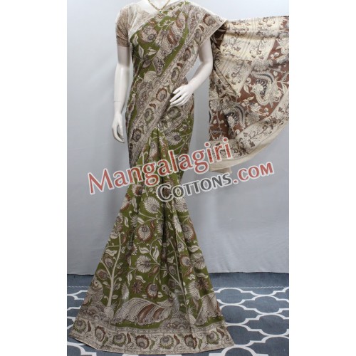 Kalamkari Hand Printed Cotton Saree. Saree comes with Unstitched Blouse Piece.
