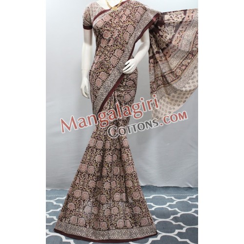 Kalamkari Hand Printed Cotton Saree. Saree comes with Unstitched Blouse Piece.