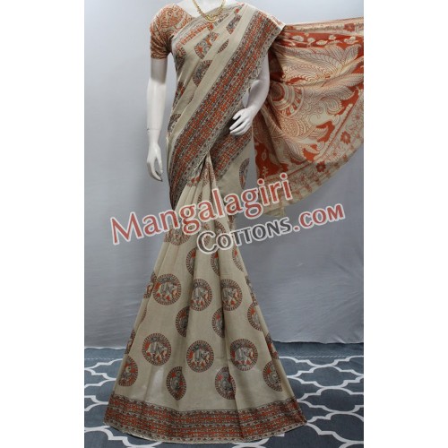 Kalamkari Cotton Saree. Saree comes with Unstitched Blouse Piece.