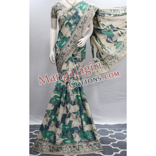 Kalamkari Cotton Saree. Saree comes with Unstitched Blouse Piece.
