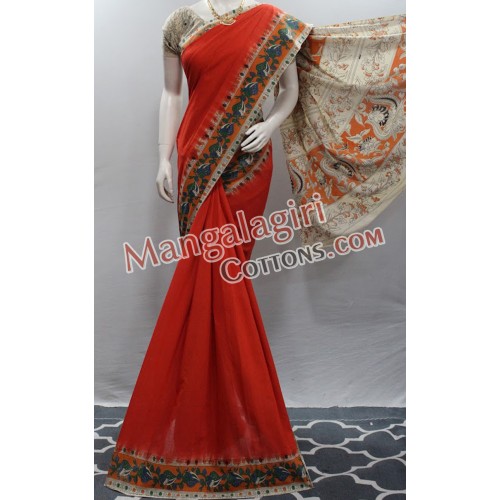 Powerloom Dye Cotton Saree with Kalamkari Border. Saree comes with Unstitched Blouse Piece.