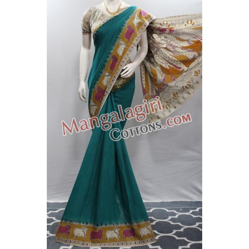 Mangalagiri Powerloom Dye Cotton Saree with Kalamkari Border. Saree comes with Unstitched Blouse Piece.