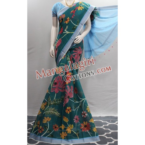 Mangalagiri Powerloom Cotton Digital Printed Saree with Cotton Thread Border. Saree comes with Unstitched Blouse Piece.