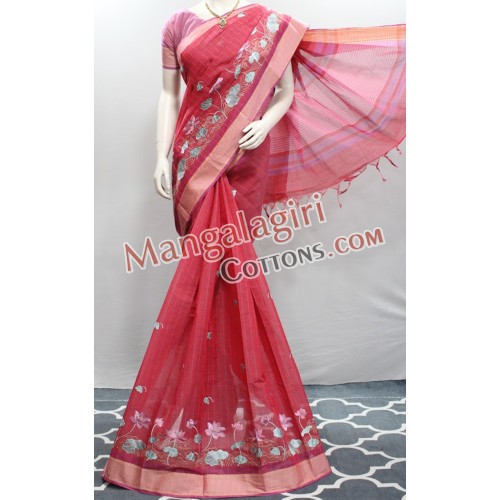 Mangalagiri Powerloom Khadi Cotton Work Saree with Cotton Thread Border. Saree comes with Unstitched Blouse Piece.