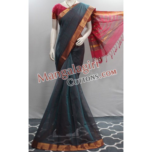 Mangalagiri Handloom Pure Cotton Saree with Gold Zari Border. Saree comes with Unstitched Blouse Piece.