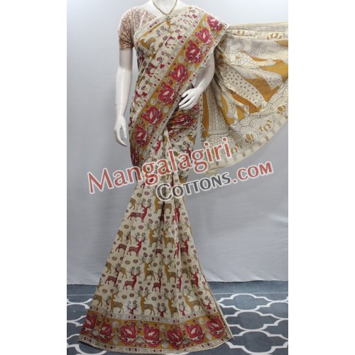 Kalamkari Cotton Saree. Saree comes with Unstitched Blouse Piece.