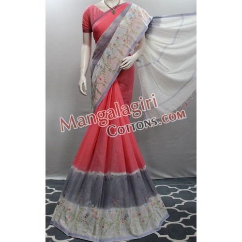 Mangalagiri Powerloom Cotton Work Saree with Cotton Thread Border. Saree comes with Unstitched Blouse Piece.