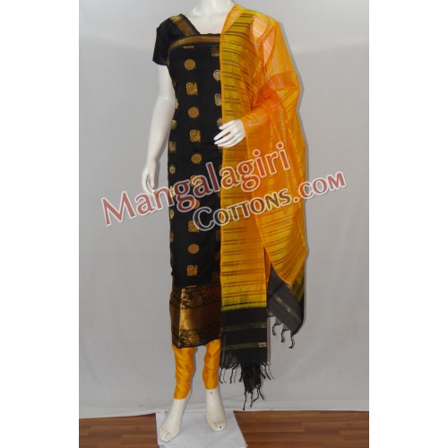 Mangalagiri Pattu Dress Material. 3 Pieces set. Top(Cotton+PureSilk Mix):2.5m, Bottom(Pattu):2m & Duppata(Cotton+PureSilk Mix):2.5m. Weaving pattern:Thick weaving.