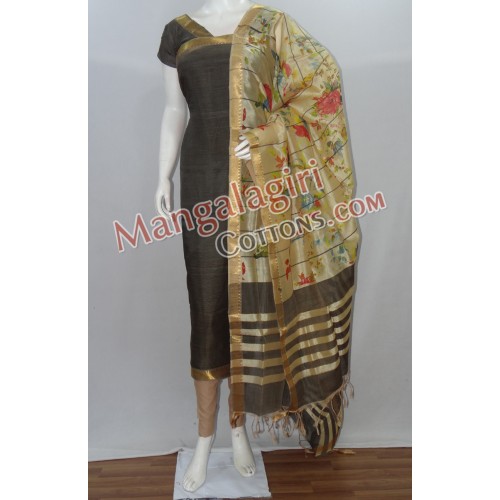 Printed Mangalagiri SemiPattu Dress Material. 3 Pieces set. Top(Cotton+Silk Mix):2.5m, Bottom(Cotton):2m & Duppata(Cotton+Silk Mix):2.5m. Weaving pattern:Semi thick weaving.