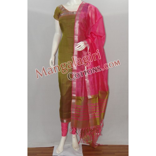 Mangalagiri SemiPattu Dress Material. 3 Pieces set. Top(Cotton+Silk Mix):2.5m, Bottom(Cotton):2m & Duppata(Cotton+Silk Mix):2.5m. Weaving pattern:Semi thick weaving.