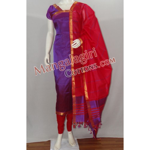Mangalagiri SemiPattu Dress Material. 3 Pieces set. Top(Cotton+Silk Mix):2.5m, Bottom(Cotton):2m & Duppata(Cotton+Silk Mix):2.5m. Weaving pattern:Semi thick weaving.