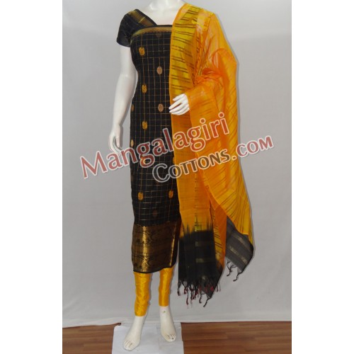 Mangalagiri Pattu Dress Material. 3 Pieces set. Top(Cotton+Silk Mix):2.5m, Bottom(Cotton):2m & Duppata(Cotton+Silk Mix):2.5m. Weaving pattern:Thick weaving.