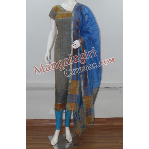 Mangalagiri SemiPattu Dress Material. 3 Pieces set. Top(Cotton+Silk Mix):2.5m, Bottom(Cotton):2m & Duppata(Cotton+Silk Mix):2.5m. Weaving pattern:Semi thick weaving.