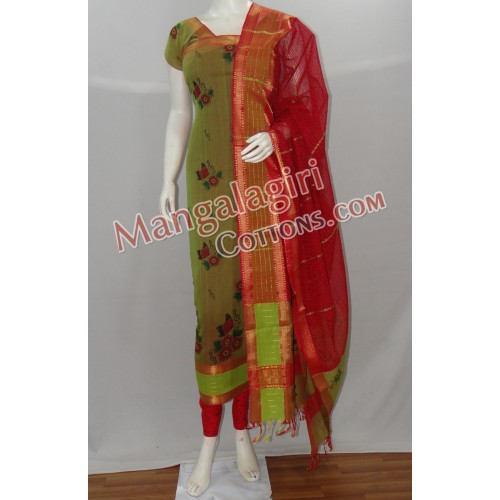 Printed Mangalagiri Cotton Dress Material. 3 Pieces set: Top: 2.5m, Bottom:2m, Duppata:2.5m.Weaving pattern:Semi thick weaving.