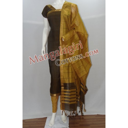 Mangalagiri SemiPattu Dress Material. 3 Pieces set. Top(Cotton+Silk Mix):2.5m, Bottom(Cotton):2m & Duppata(Cotton+Silk Mix):2.5m. Weaving pattern:Semi thick weaving.