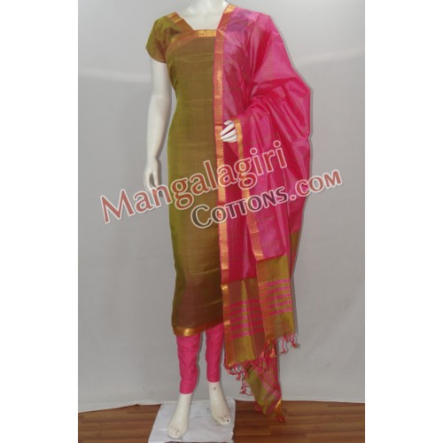 Mangalagiri SemiPattu Dress Material. 3 Pieces set. Top(Cotton+Silk Mix):2.5m, Bottom(Cotton):2m & Duppata(Cotton+Silk Mix):2.5m. Weaving pattern:Semi thick weaving.