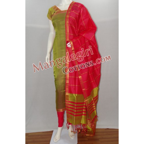 Mangalagiri SemiPattu Dress Material. 3 Pieces set. Top(Cotton+Silk Mix):2.5m, Bottom(Cotton):2m & Duppata(Cotton+Silk Mix):2.5m. Weaving pattern:Semi thick weaving.