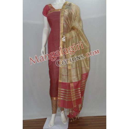 Mangalagiri SemiPattu Dress Material. 3 Pieces set. Top(Cotton+Silk Mix):2.5m, Bottom(Cotton):2m & Duppata(Cotton+Silk Mix):2.5m. Weaving pattern:Semi thick weaving.