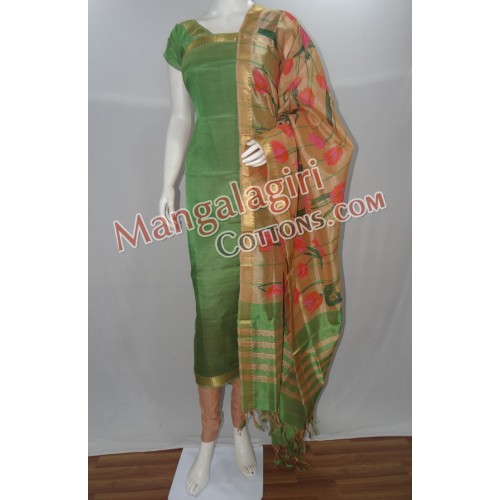 Printed Mangalagiri SemiPattu Dress Material. 3 Pieces set. Top(Cotton+Silk Mix):2.5m, Bottom(Cotton):2m & Duppata(Cotton+Silk Mix):2.5m. Weaving pattern:Semi thick weaving.