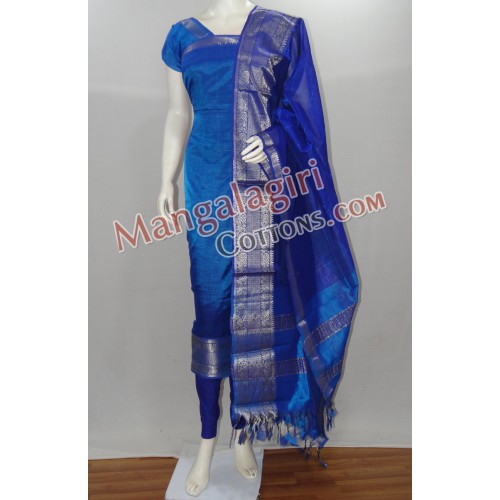 Mangalagiri SemiPattu Dress Material. 3 Pieces set. Top(Cotton+Silk Mix):2.5m, Bottom(Cotton):2m & Duppata(Cotton+Silk Mix):2.5m. Weaving pattern:Semi thick weaving.