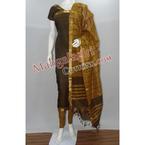 Mangalagiri SemiPattu Dress Material. 3 Pieces set. Top(Cotton+Silk Mix):2.5m, Bottom(Cotton):2m & Duppata(Cotton+Silk Mix):2.5m. Weaving pattern:Semi thick weaving.