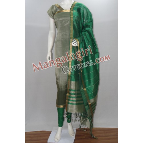 Mangalagiri SemiPattu Dress Material. 3 Pieces set. Top(Cotton+Silk Mix):2.5m, Bottom(Cotton):2m & Duppata(Cotton+Silk Mix):2.5m. Weaving pattern:Semi thick weaving.