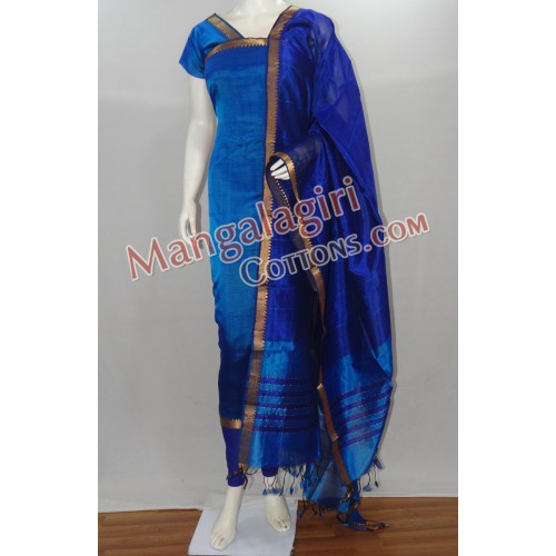 Mangalagiri SemiPattu Dress Material. 3 Pieces set. Top(Cotton+Silk Mix):2.5m, Bottom(Cotton):2m & Duppata(Cotton+Silk Mix):2.5m. Weaving pattern:Semi thick weaving.