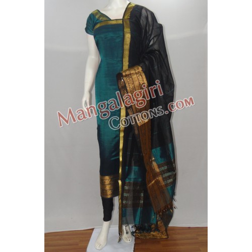 Mangalagiri SemiPattu Dress Material. 3 Pieces set. Top(Cotton+Silk Mix):2.5m, Bottom(Cotton):2m & Duppata(Cotton+Silk Mix):2.5m. Weaving pattern:Semi thick weaving.