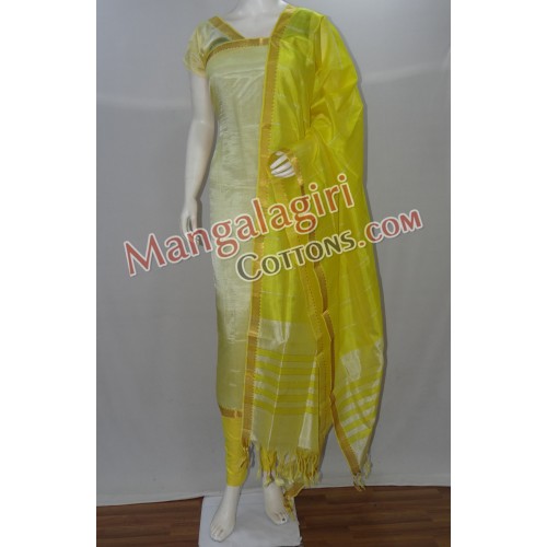 Mangalagiri SemiPattu Dress Material. 3 Pieces set. Top(Cotton+Silk Mix):2.5m, Bottom(Cotton):2m & Duppata(Cotton+Silk Mix):2.5m. Weaving pattern:Semi thick weaving.