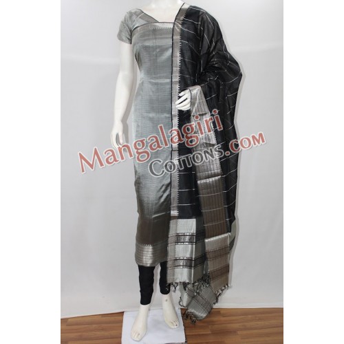 Mangalagiri SemiPattu Dress Material. 3 Pieces set. Top(Cotton+Silk Mix):2.5m, Bottom(Cotton):2m & Duppata(Cotton+Silk Mix):2.5m. Weaving pattern:Semi thick weaving.