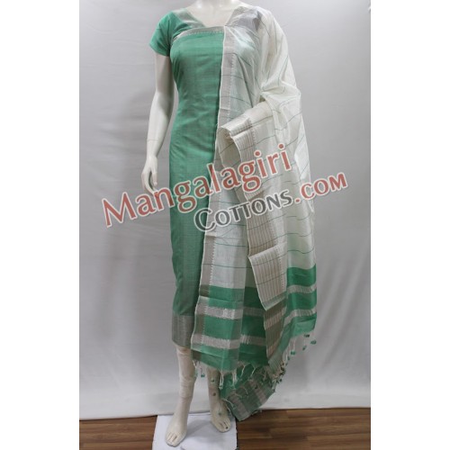 Mangalagiri SemiPattu Dress Material. 3 Pieces set. Top(Cotton+Silk Mix):2.5m, Bottom(Cotton):2m & Duppata(Cotton+Silk Mix):2.5m. Weaving pattern:Semi thick weaving.