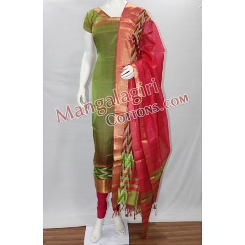 Mangalagiri SemiPattu Dress Material. 3 Pieces set. Top(Cotton+Silk Mix):2.5m, Bottom(Cotton):2m & Duppata(Cotton+Silk Mix):2.5m. Weaving pattern:Semi thick weaving.