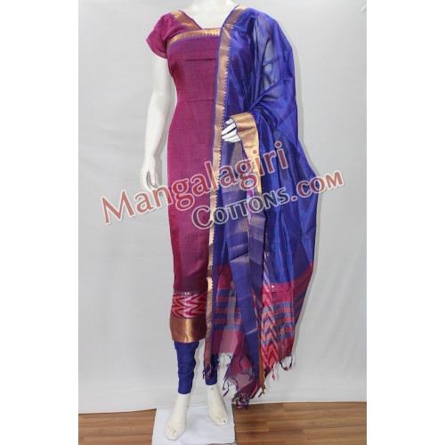Mangalagiri SemiPattu Dress Material. 3 Pieces set. Top(Cotton+Silk Mix):2.5m, Bottom(Cotton):2m & Duppata(Cotton+Silk Mix):2.5m. Weaving pattern:Semi thick weaving.