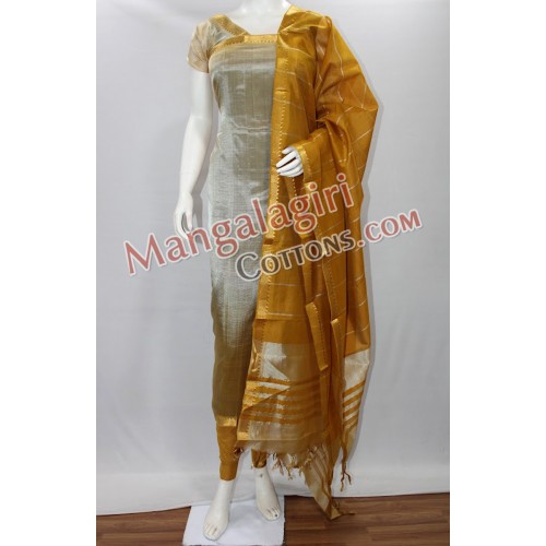 Mangalagiri SemiPattu Dress Material. 3 Pieces set. Top(Cotton+Silk Mix):2.5m, Bottom(Cotton):2m & Duppata(Cotton+Silk Mix):2.5m. Weaving pattern:Semi thick weaving.
