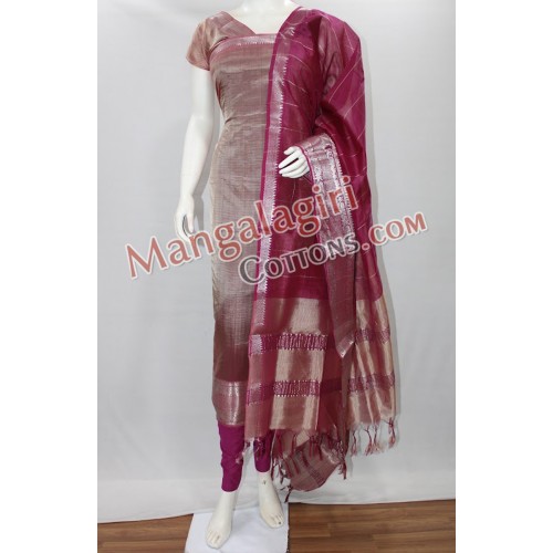 Mangalagiri SemiPattu Dress Material. 3 Pieces set. Top(Cotton+Silk Mix):2.5m, Bottom(Cotton):2m & Duppata(Cotton+Silk Mix):2.5m. Weaving pattern:Semi thick weaving.