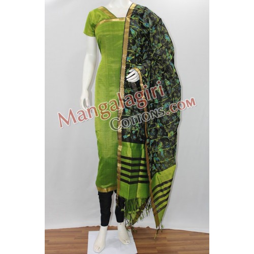 Printed Mangalagiri SemiPattu Dress Material. 3 Pieces set. Top(Cotton+Silk Mix):2.5m, Bottom(Cotton):2m & Duppata(Cotton+Silk Mix):2.5m. Weaving pattern:Semi thick weaving.