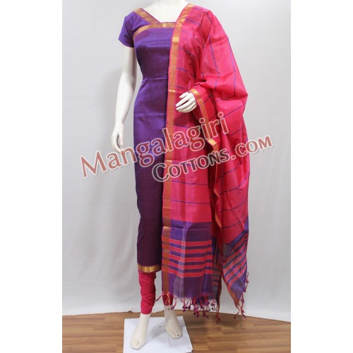 Mangalagiri SemiPattu Dress Material. 3 Pieces set. Top(Cotton+Silk Mix):2.5m, Bottom(Cotton):2m & Duppata(Cotton+Silk Mix):2.5m. Weaving pattern:Semi thick weaving.