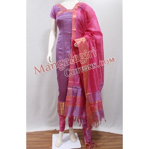 Mangalagiri SemiPattu Dress Material. 3 Pieces set. Top(Cotton+Silk Mix):2.5m, Bottom(Cotton):2m & Duppata(Cotton+Silk Mix):2.5m. Weaving pattern:Semi thick weaving.