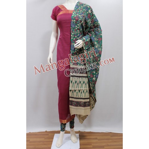 Kalamkari Printed Dress Material With Mangalagiri Handloom Zari Top. 3 Pieces set: Top: 2.5m, Bottom:2m, Duppata:2.5m.