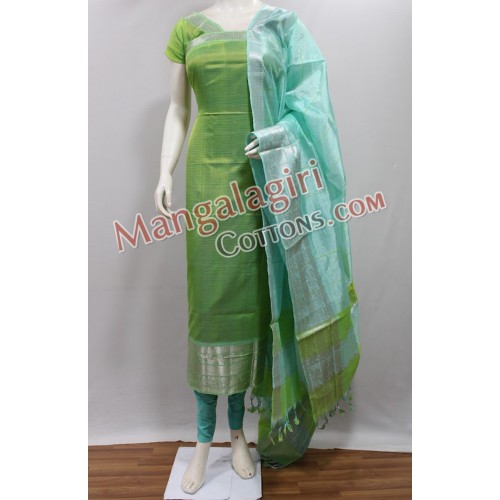 Mangalagiri SemiPattu Dress Material. 3 Pieces set. Top(Cotton+Silk Mix):2.5m, Bottom(Cotton):2m & Duppata(Cotton+Silk Mix):2.5m. Weaving pattern:Semi thick weaving.